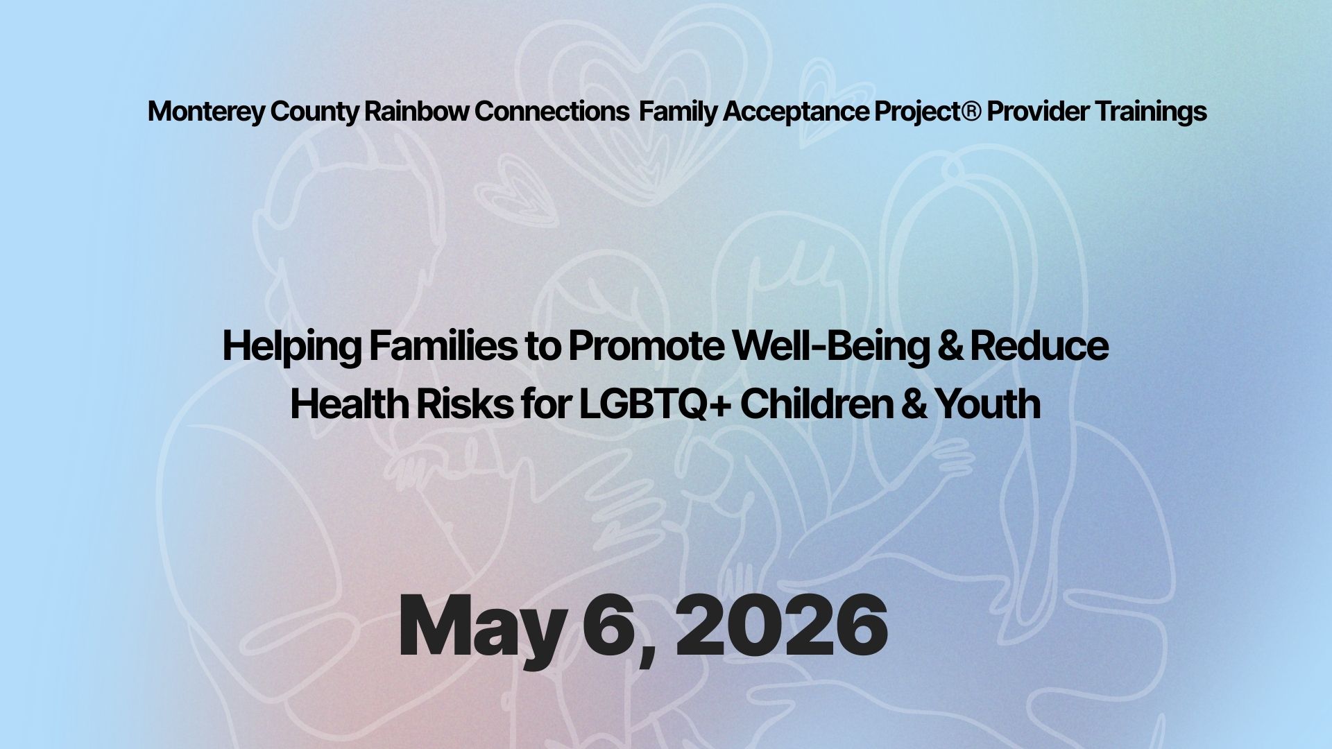 This 1-hour session will provide an overview of the Family Acceptance Project® (FAP) family support approach to help diverse families to support their LGBTQ children.