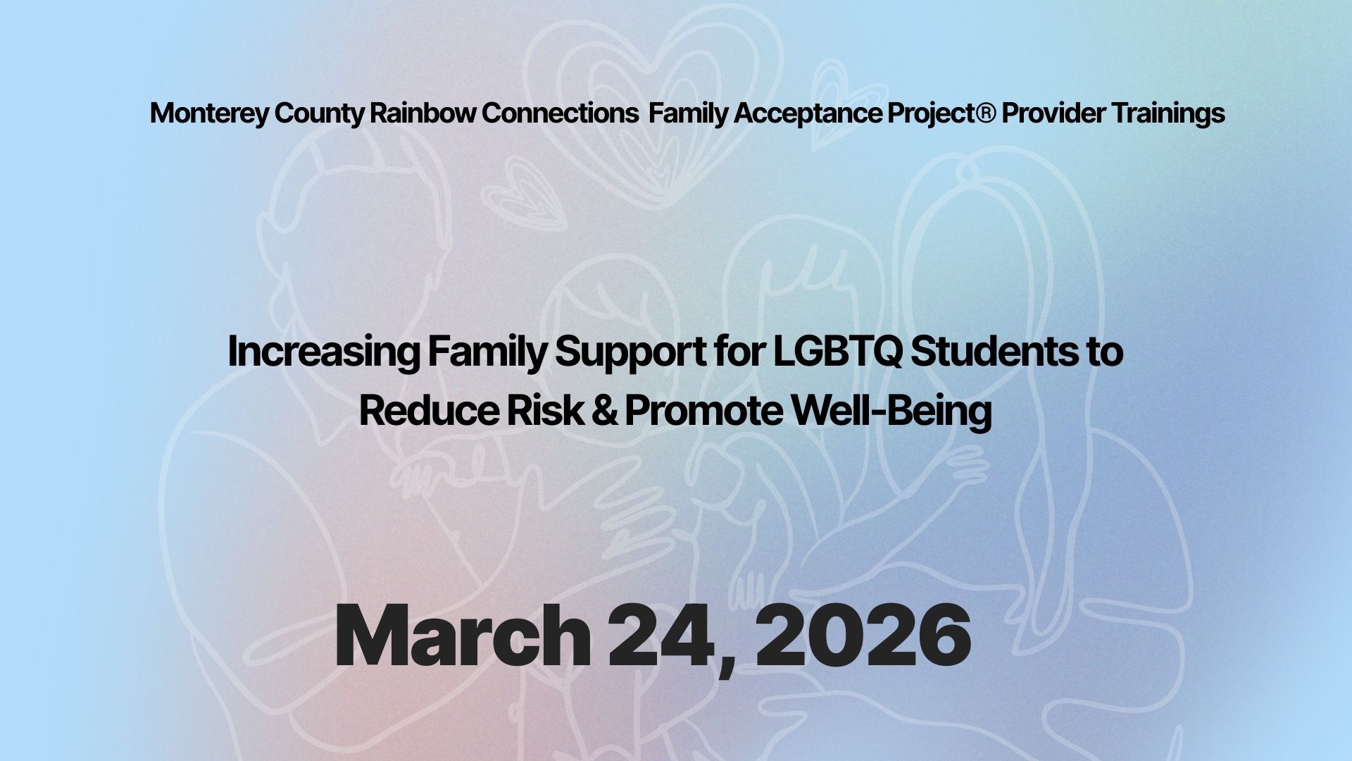 This 1-hour session will provide an overview of the Family Acceptance Project® (FAP) family support approach to help diverse families to support their LGBTQ children.