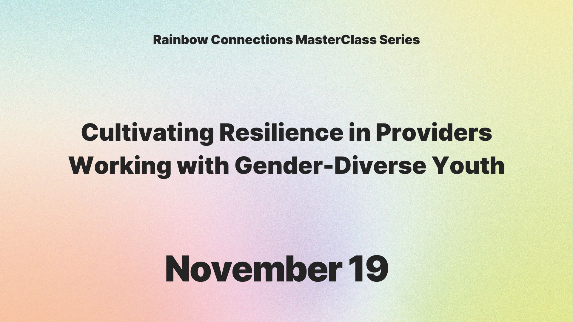 Gender Diversity Master Class Series for Providers Cultivating Resilience in Providers Working with Gender-Diverse Youth ...