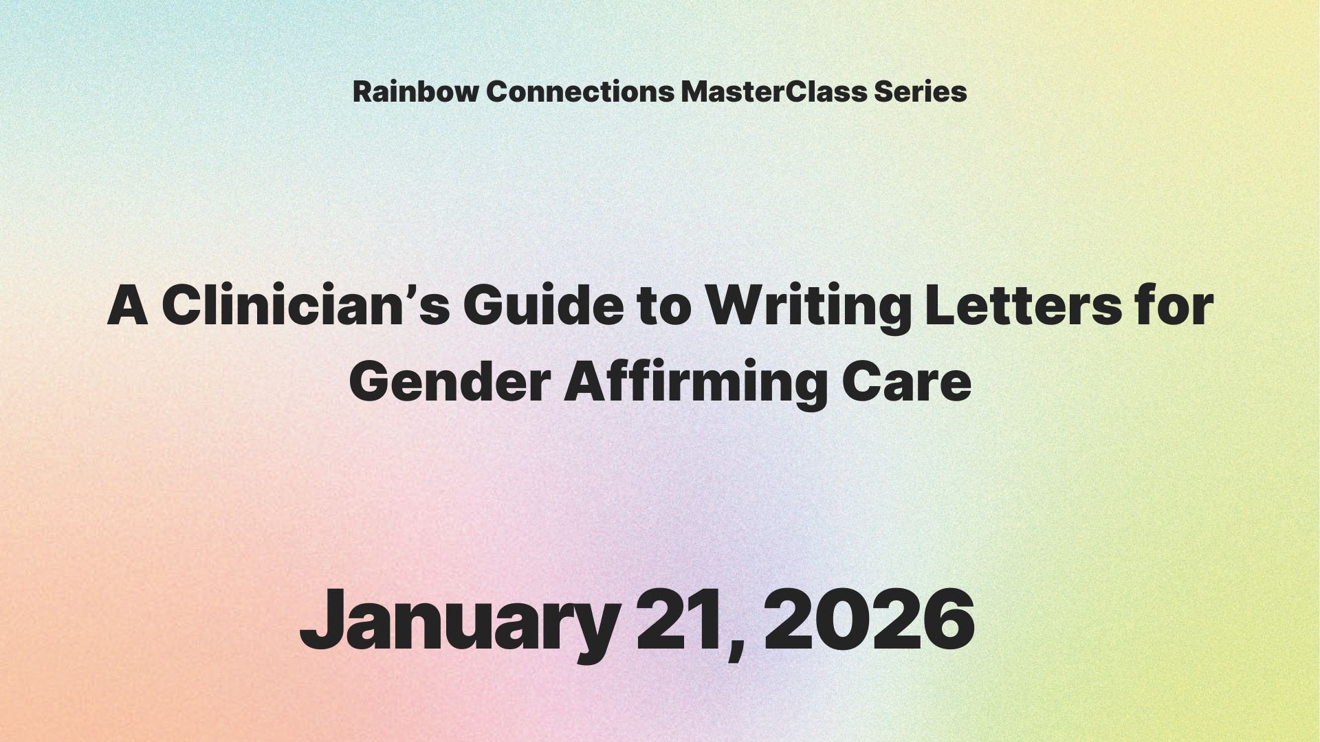 In this three-hour workshop, Dr. Shawn Giammattei, Juliette Greenham, and Dr. Jen Hastings translate contemporary standards (including SOC-8 and endocrine guidance) into clear, patient-centered letters for adults and youth.